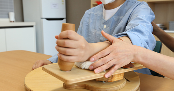 식사 동작과 의류 착탈, 배뇨배변 등의 기능적인 재활 프로그램이 구성되어 있습니다.